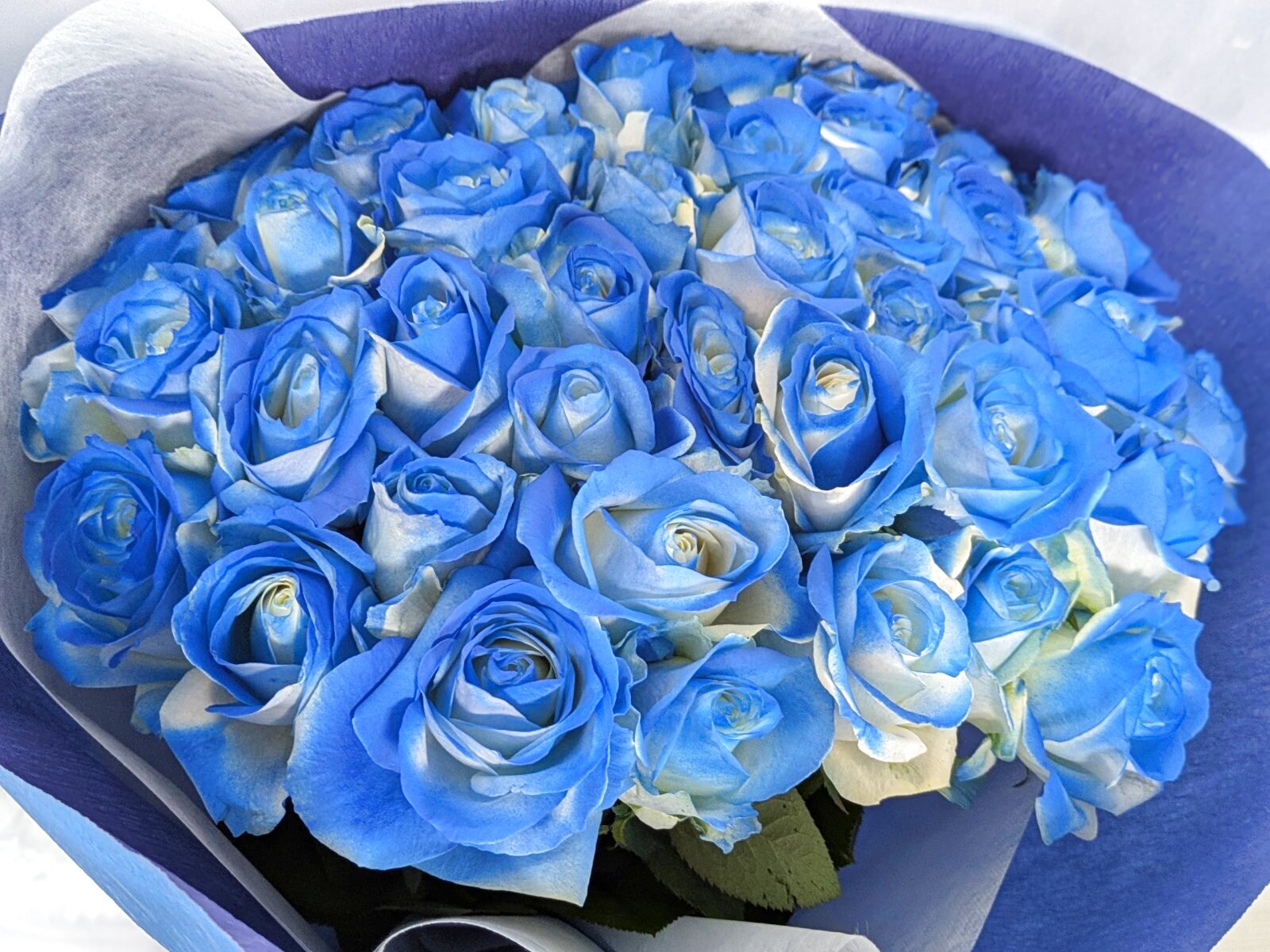 青薔薇(グラデーション)40本の花束|沖縄で贈る幻想的なブルーローズギフト